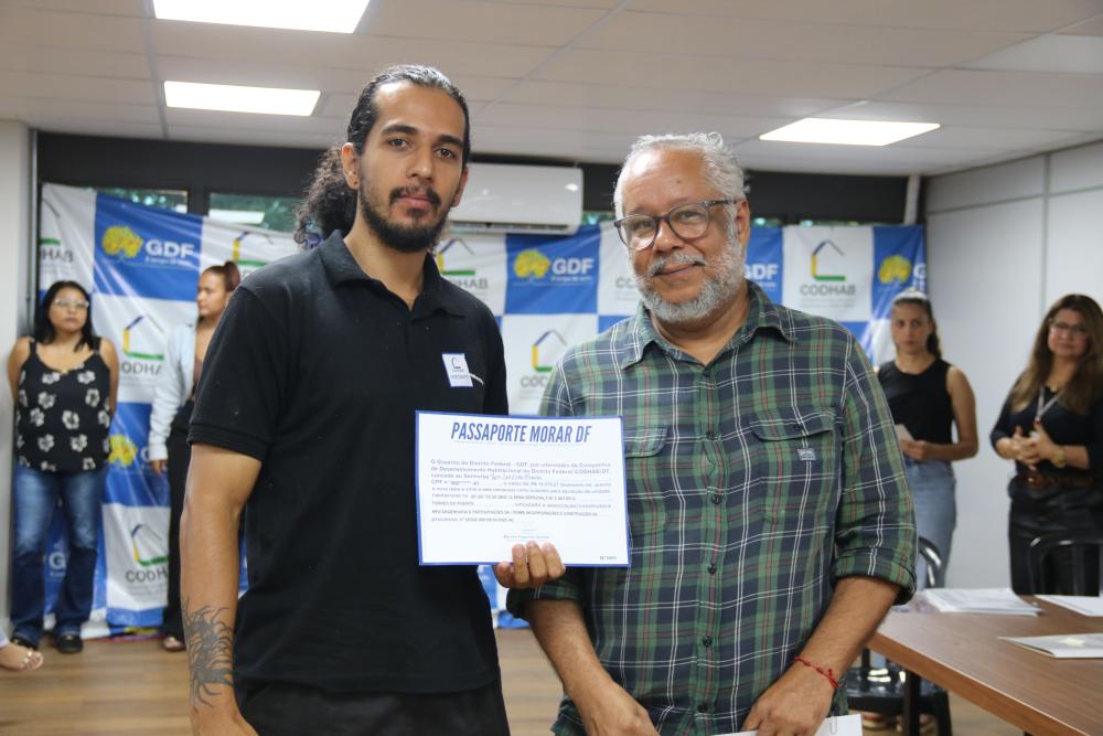 Já o desenvolvedor de Tecnologia da Informação, Yuri Ruan, ressaltou o impacto direto que o Cheque Moradia deu na oportunidade de comprar o primeiro imóvel. “Acreditem no programa de moradia da Codhab. Estou aqui com o Cheque Moradia em mãos para dar entrada na minha primeira casa própria”, comemorou. A diretoria da Codhab conduziu a entrega simbólica do Cheque Moradia às famílias beneficiárias.